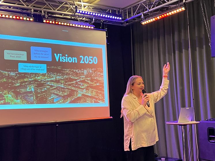 Kata Nilsson, kommunalrådm, inledde dialogmötet om Vision 2050.