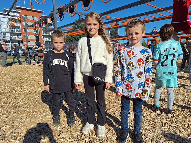 Syskonen Olofsson, Leon, Livia och Noel, tyckte hinderbanan var otroligt rolig och hade hunnit testa "allt".