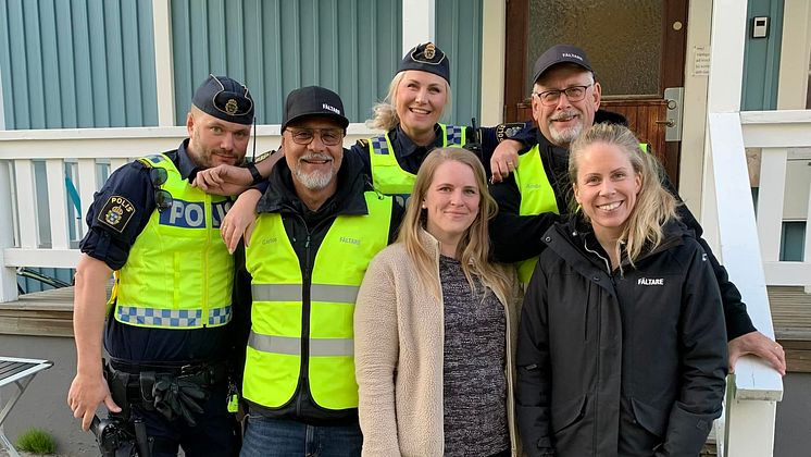 På bilden: Områdespoliserna Martin Vidgren och Emma Svensson från Polisen i Piteå älvdal, fältassistenterna Carlos Pereyra, Anders Elvhäger och Anna Kemi samt socialsekreterare Sanna Öquist från Piteå kommun.