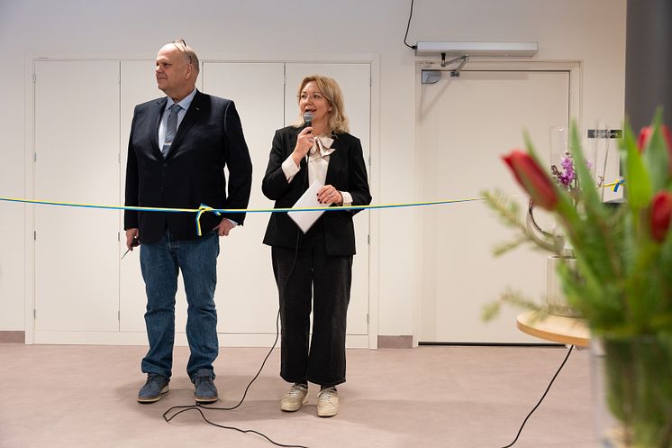 Sven-Gösta Pettersson, socialnämndens ordförande och socialchef Eva Börjesson Öman invigde Skogsgården tillsammans.