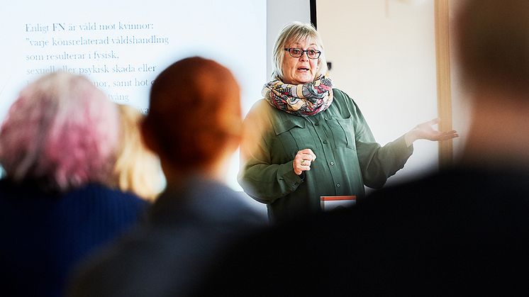 Under gårdagenfick bibliotekspersonalen en grundläggande utbildning om våld i nära relationer av Lena Öfverholm-Månsson från individ och familj på socialtjänsten.