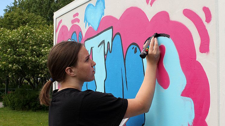 - Det ligger mycket i det ordet, det är lite av "det här kan vi göra själva", dessutom ligger det i tiden att göra eget, att återbruka. Jag hör ju till pensionärsgruppen och vi har ju också med oss detta med hejmsöme...åtminstone våra mammor. Men graffiti var helt nytt för mig, det har varit jättespännande att testa, roligt att ta ut svängarna, säger hon.