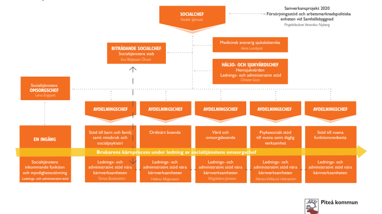 - För oss har det varit viktigt att sätta ihop ett lag av personer som tillsammans kan jobba med de utmaningar vi står inför. Vår vision är en plattare organisation som ska samplanera över verksamhetsområdena, avskaffa revirtänk och skapa en kultur som främjar utveckling i arbetslagen. Socialtjänstens samlade resurser ska används på rätt sätt, för att göra rätt saker, i rätt tid, säger Fredrik Sjömark, socialchef i Piteå kommun.