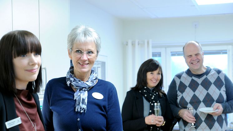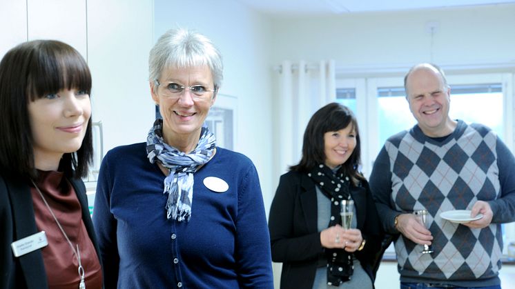 Socialnämndens ordförande Sven-Gösta Pettersson gästade invigningen tillsammans med Magdalena Jonsson, avdelningschef för särskilt boende äldreomsorg, Leena Leijon, avdelningschef personlig assistans och Helena Magnusson avdelningschef ordinärt boende.
